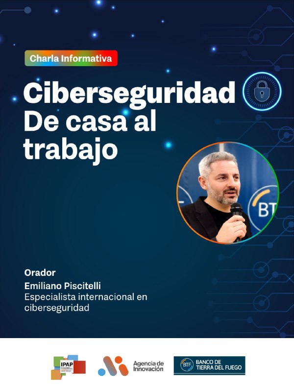El Banco de Tierra del Fuego dará inicio esta semana a una nueva serie de charlas abiertas y gratuitas sobre ciberseguridad, destinadas a toda la comunidad. Bajo el título “Ciberseguridad: de casa al trabajo”, la capacitación contará con la presencia de Emiliano Piscitelli, conferencista internacional y CEO de VHGroup, reconocido por su trayectoria en el ámbito de la seguridad digital.