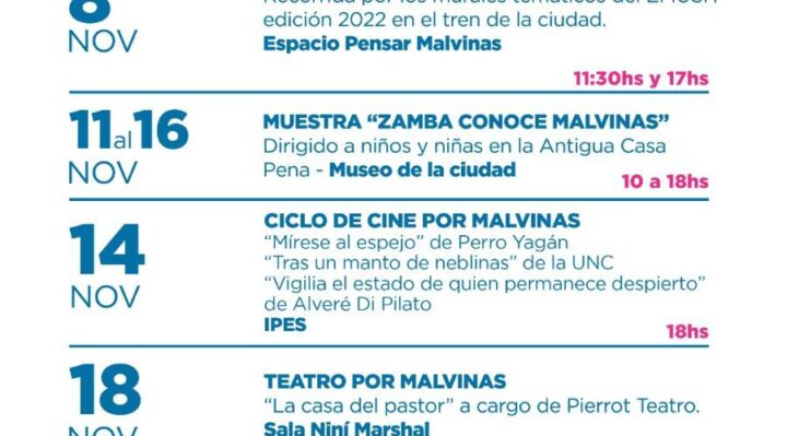 La iniciativa, es parte de las actividades que impulsa el Municipio en diferentes puntos de la ciudad durante el mes de noviembre a fin de generar espacios de debate y reflexión sobre la Cuestión Malvinas. Durante la jornada, se exhibirán “Mírese al Espejo” de Perro Yagán, corto ganador del concurso 40 años de Malvinas por la Secretaría de Cultura de Tierra del Fuego, donde se observa a un general delirante y ebrio dirigir una guerra desde su tienda de campaña.
