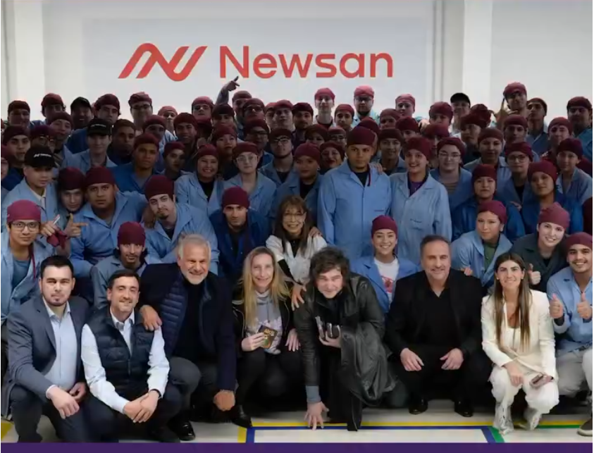 El presidente Javier Milei visitó este lunes la planta industrial de Newsan, en Ushuaia, acompañado por los candidatos fueguinos Agustín Coto (senador) y Miguel Rodríguez (diputado). La recorrida incluyó encuentros con directivos y trabajadores de la compañía, uno de los principales polos fabriles de la provincia.