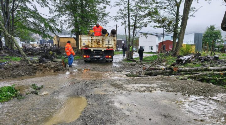 La Municipalidad de Ushuaia informa que, frente al registro de precipitaciones equivalentes a un mes completo de lluvia acumuladas en apenas 48 horas, se reunió el COE municipal y se dispuso un amplio operativo para intervenir en los sectores más afectados.
